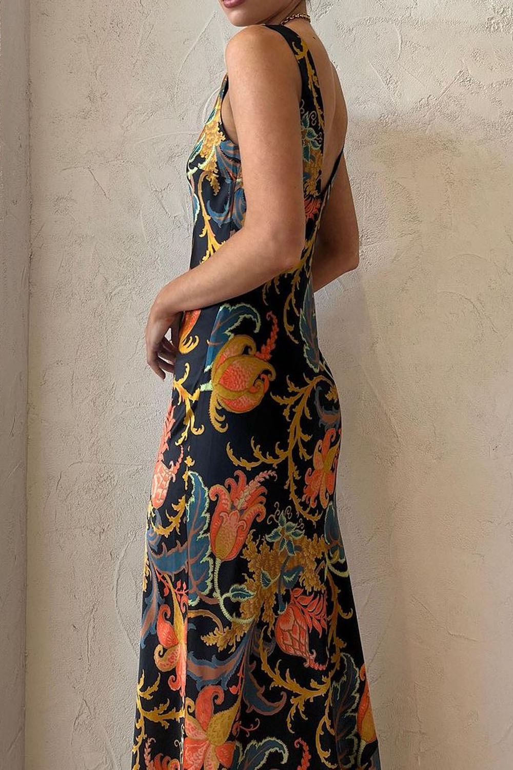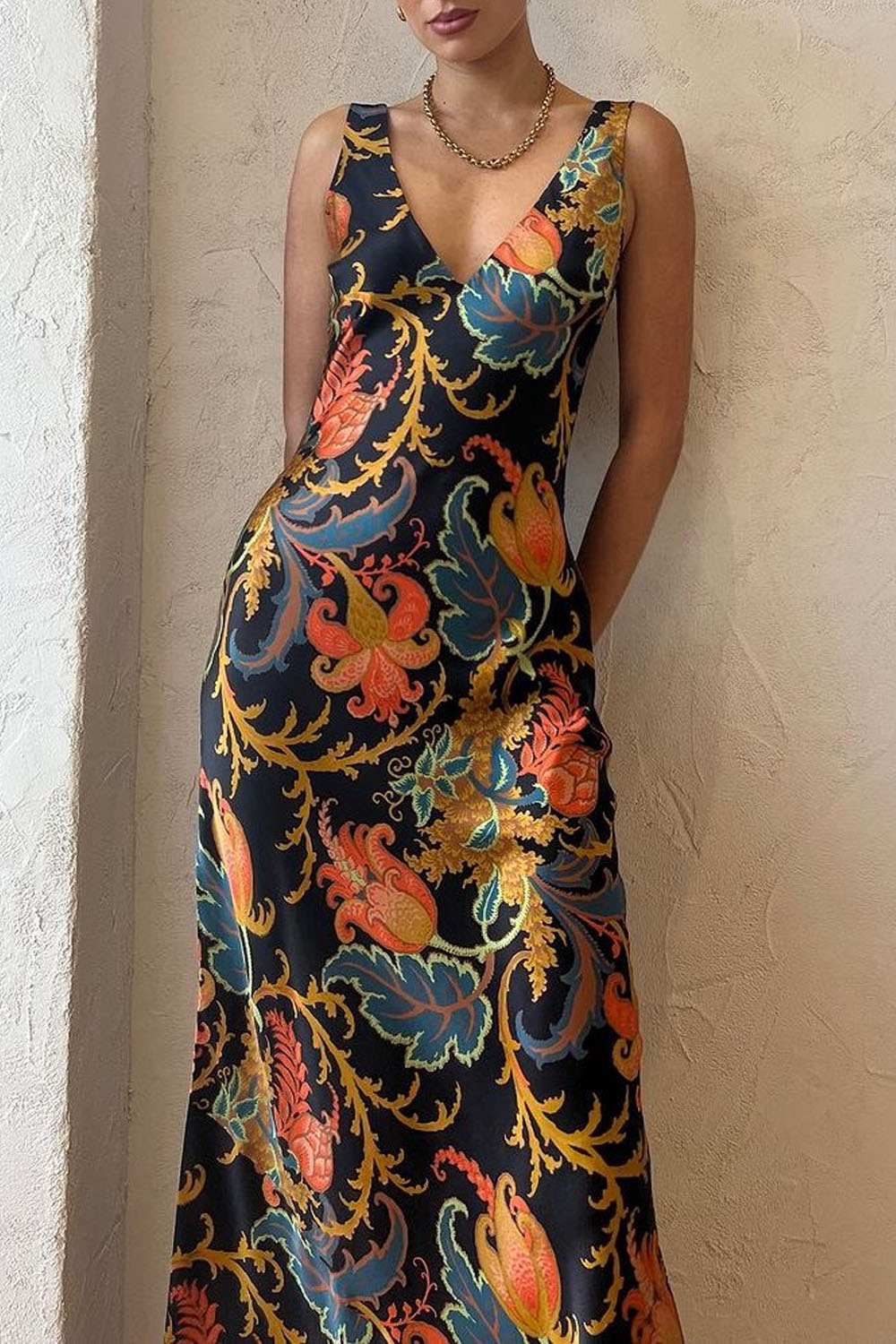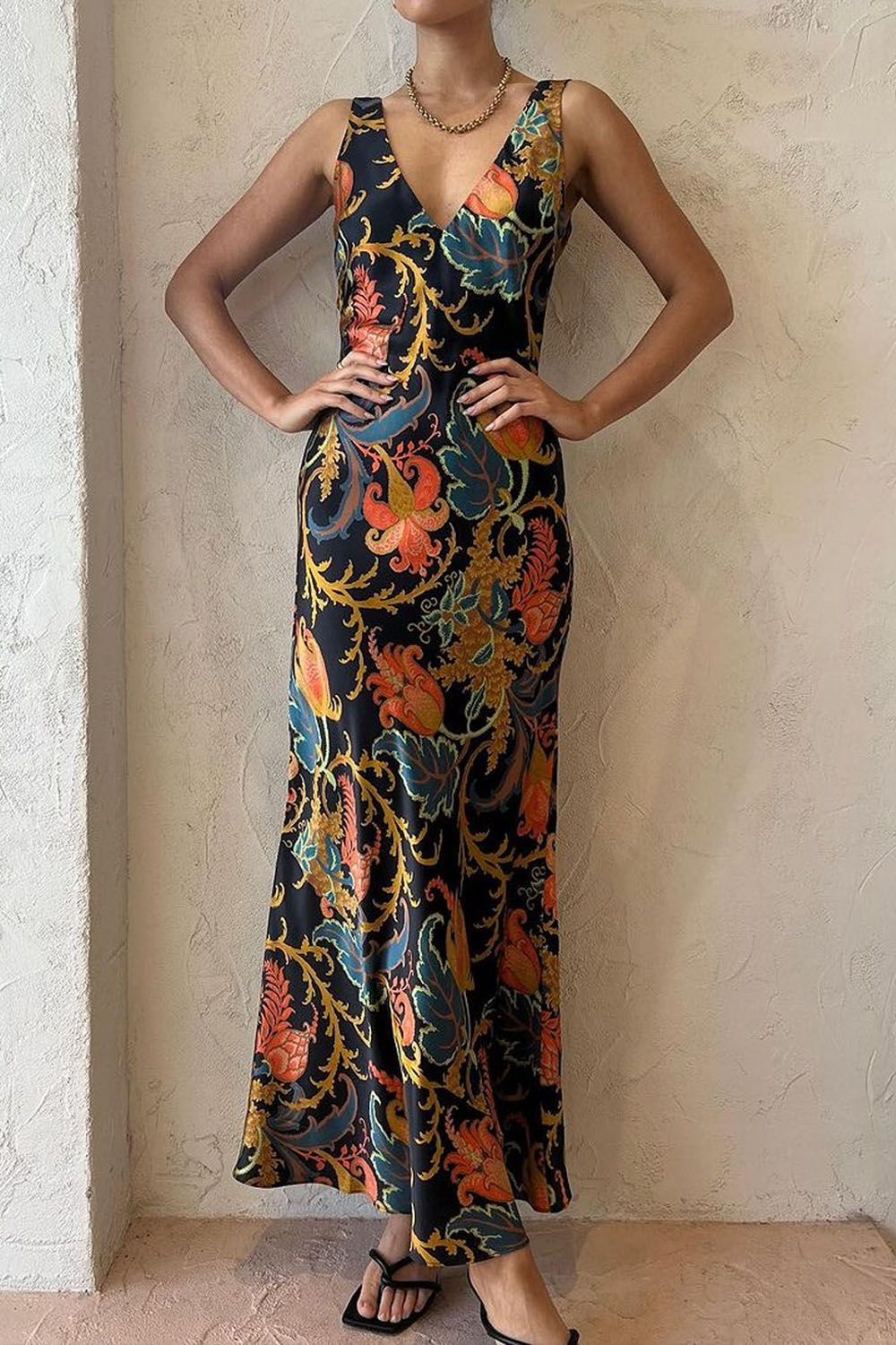 Deslumbrante maxi vestido de cami con escote en V y encantador estampado Deschamps