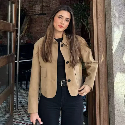 Ella | Chaqueta de cuero sólida vintage con cuello de solapa