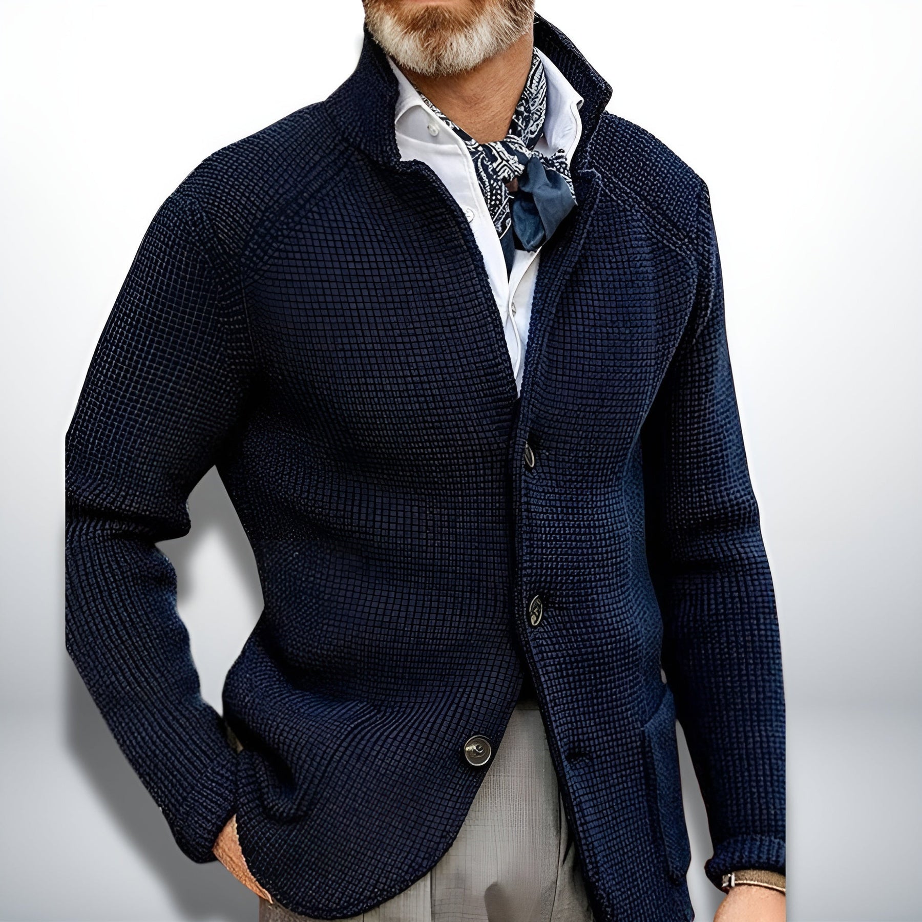 Este suéter de hombre de tejido suave está diseñado para brindar una sensación exclusiva y relajada, al mismo tiempo que realza tu atuendo con un toque atemporal y moderno.