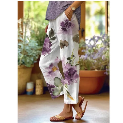 Amanda | Pantalón floral botánico con caída fluida y estilo casual