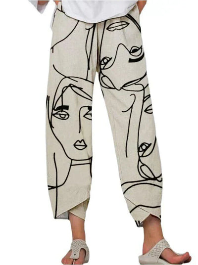 Pantalones sueltos de mujer Linda con cintura gris y llamativas costuras estampadas