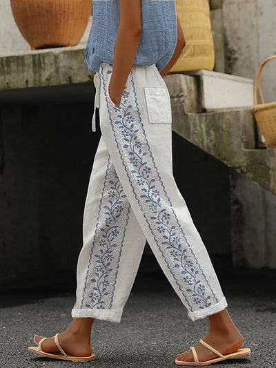Salomé | Pantalón floral con cordón decorativo y estilo cómodo